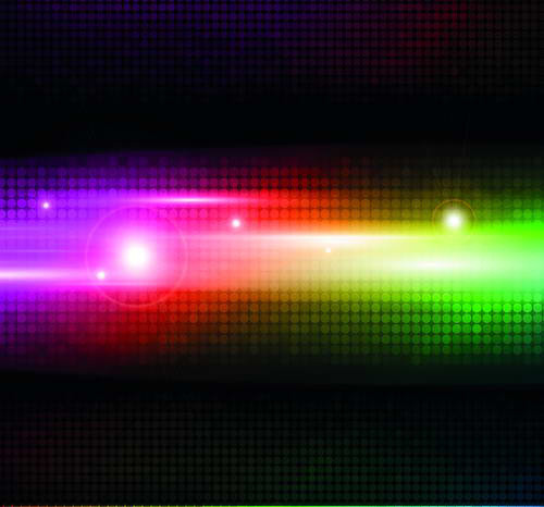 Dynamic abstract vector background featuring vibrant rainbow light beams with glowing lens flares on a dark dotted backdrop. Perfect for music events, nightlife designs, technology themes, posters, banners, digital artwork, and modern visual projects. High-quality, fully editable and scalable vector ideal for both print and web use.