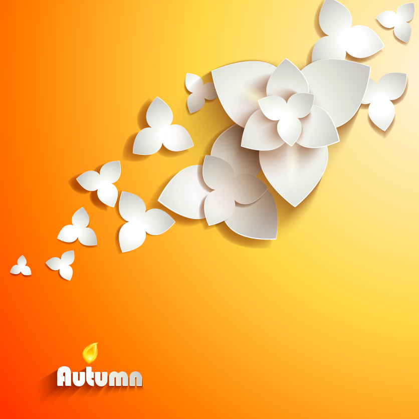 This autumn-themed vector showcases elegant paper-cut floral shapes arranged across a smooth orange-to-yellow gradient background. Perfect for seasonal posters, invitations, banners, social media graphics, and creative fall designs. Download this high-quality vector to add a modern and stylish autumn touch to your projects.