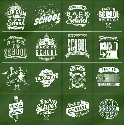 Chalkboard Back to School Typography Badges Vector Collection