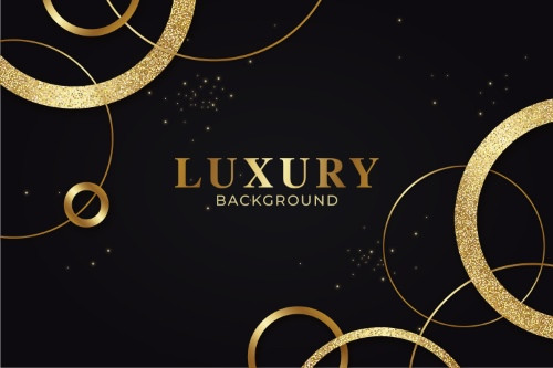 A premium dark luxury background featuring shimmering golden glitter circles, smooth gold rings, and delicate sparkling accents. Perfect for invitations, branding, event promotions, product presentations, and elegant design projects. This high-quality, fully editable vector background is SEO-optimized for creative resource and vector download websites.