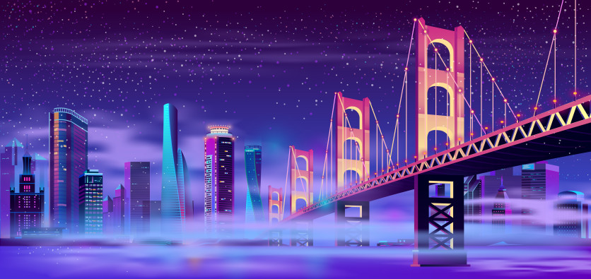 Home » Vector Themes » Estate / Landscape / City » Futuristic Neon Bridge City Night Vector