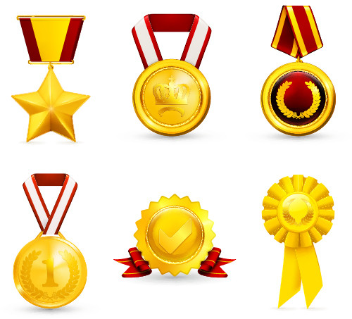 Home » Vector Categories » Logos & Badges » Golden Award Badges and Medals Vector Set