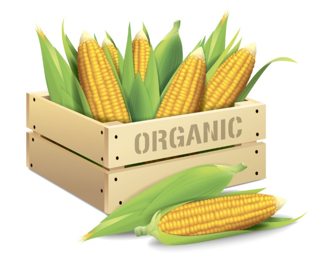 This organic corn illustration vector features fresh yellow maize neatly arranged in a wooden crate labeled “ORGANIC,” along with additional husked corn in the foreground. Perfect for farm branding, organic product packaging, food market promotions, restaurant menus, and eco-friendly design projects. Download this high-quality vector to bring a natural, healthy, and farm-fresh look to your creative work.