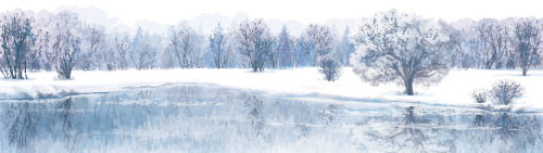 Home » Vector Trending » Christmas / New Year » Panoramic Winter Landscape Vector with Snowy Trees and Frozen Lake
