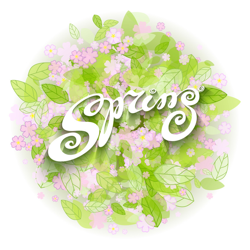 A fresh spring-themed vector featuring lush green leaves, soft pink blossoms, and elegant “Spring” typography arranged in a circular floral composition. Perfect for seasonal promotions, posters, greeting cards, banners, websites, and nature-inspired branding. Clean, vibrant, and fully scalable vector illustration.