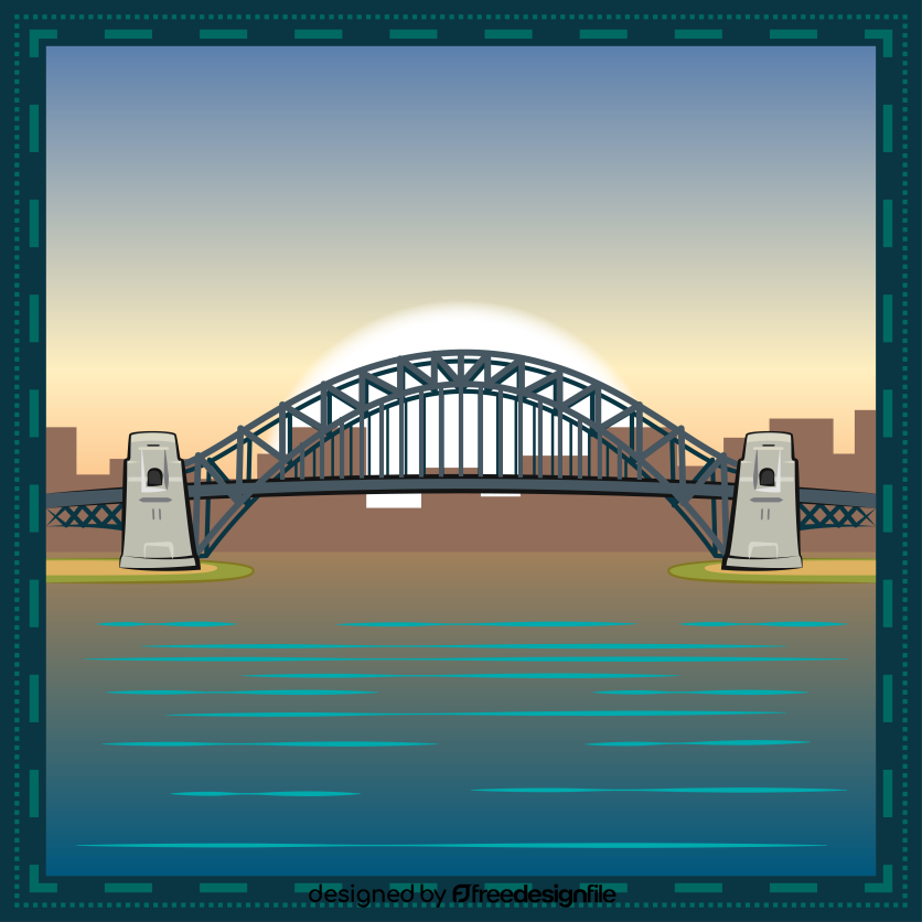 This detailed vector illustration features the iconic Sydney Harbour Bridge at sunrise, showcasing its steel arch design, city skyline, and reflective waters. Perfect for travel graphics, Australia-themed designs, architectural artwork, and creative vector collections. Ideal for digital downloads and professional design projects.